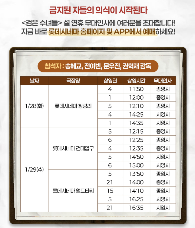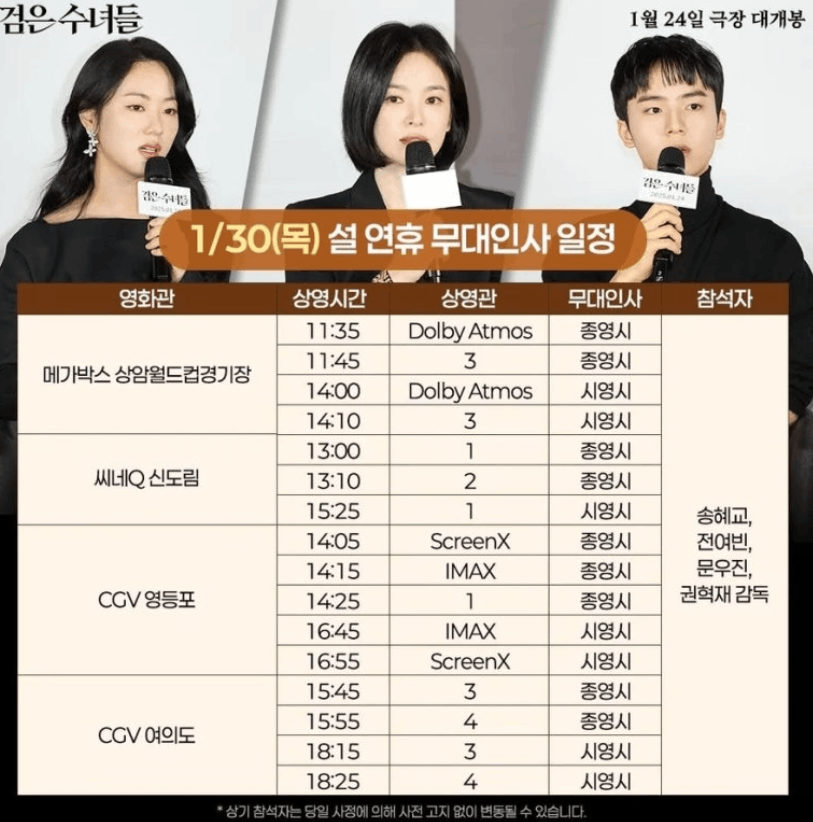 - 1월 30일 : 다양한 상영관에서 무대인사 진행