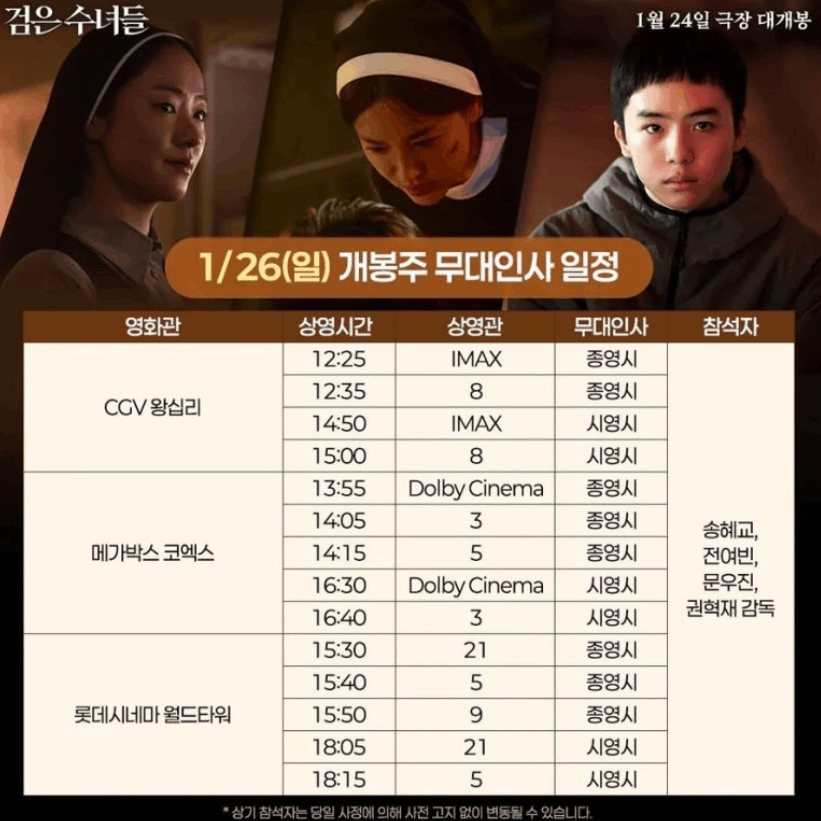 - 1월 26일 : IMAX, Dolby Cinema에서 무대인사 진행